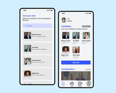 An App that ensures secure, transparent voting through blockchain technology. It enhances election integrity and fosters civic engagement with real-time updates and community interaction.