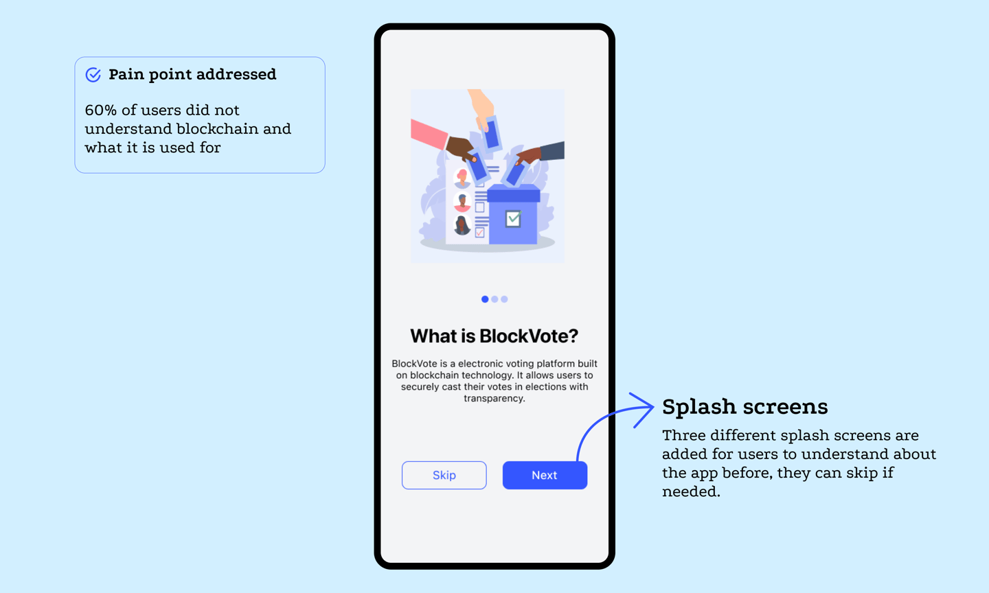 I conducted surveys and interviews to understand the user's mindset of blockchain and voting apps.